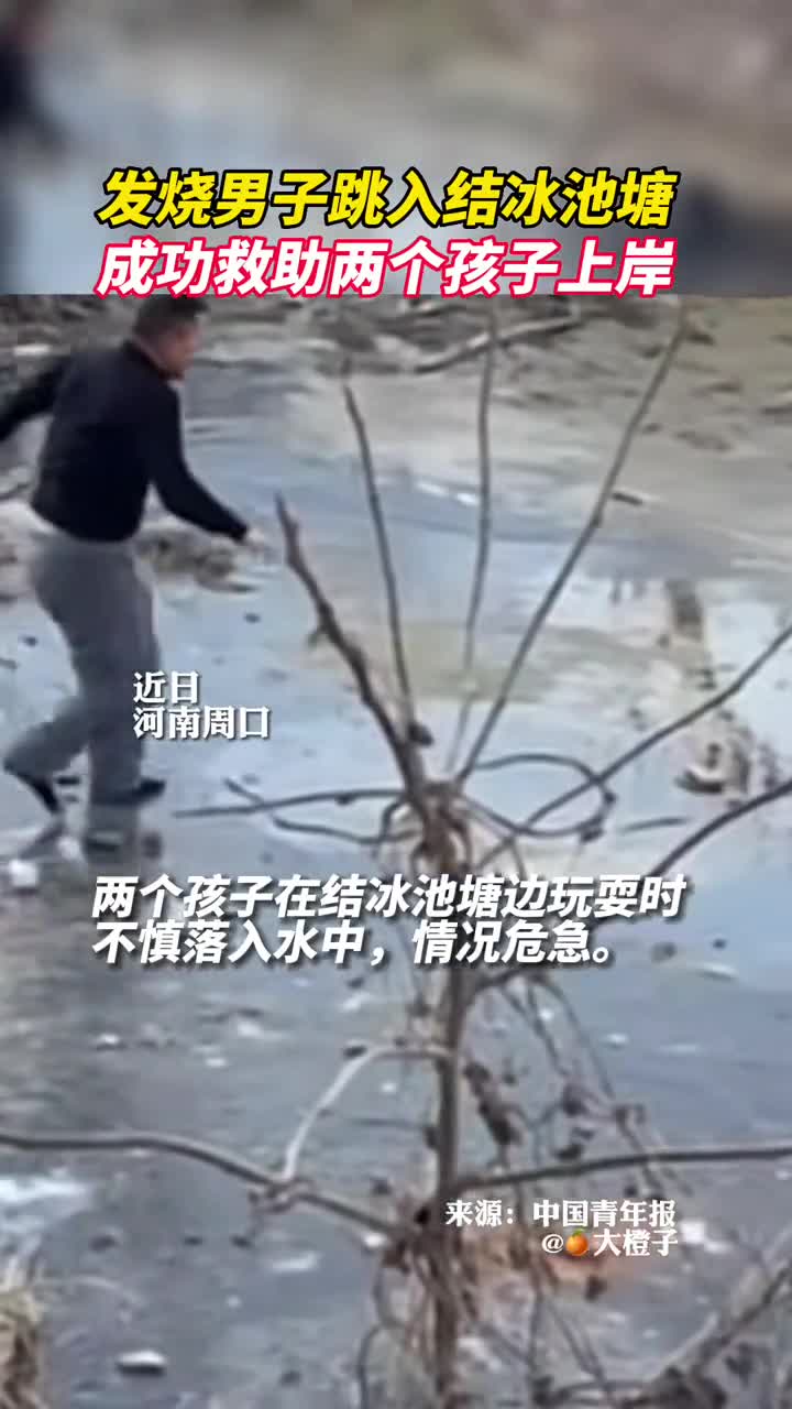 发烧男子跳入结冰池塘成功救助两个孩子上岸